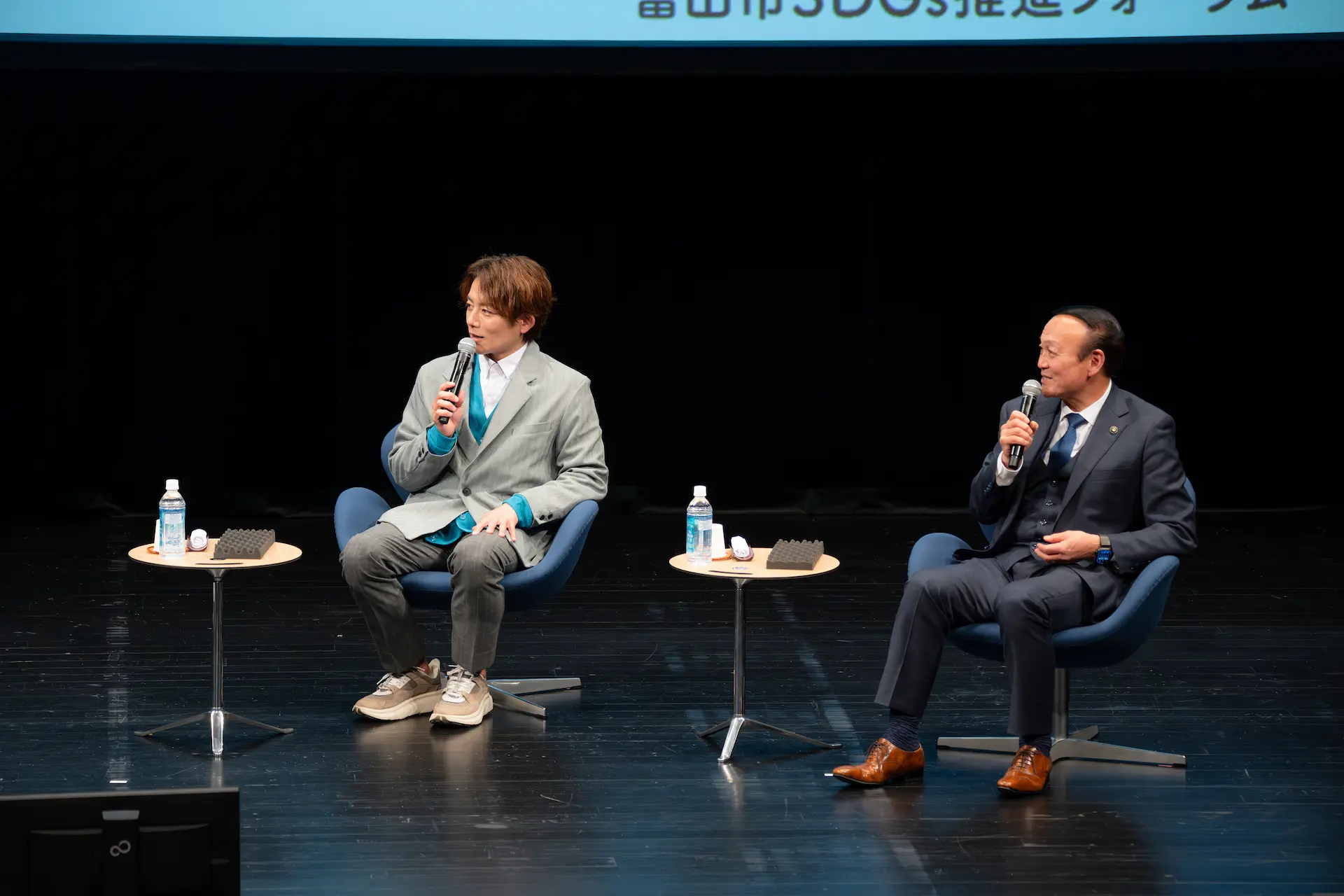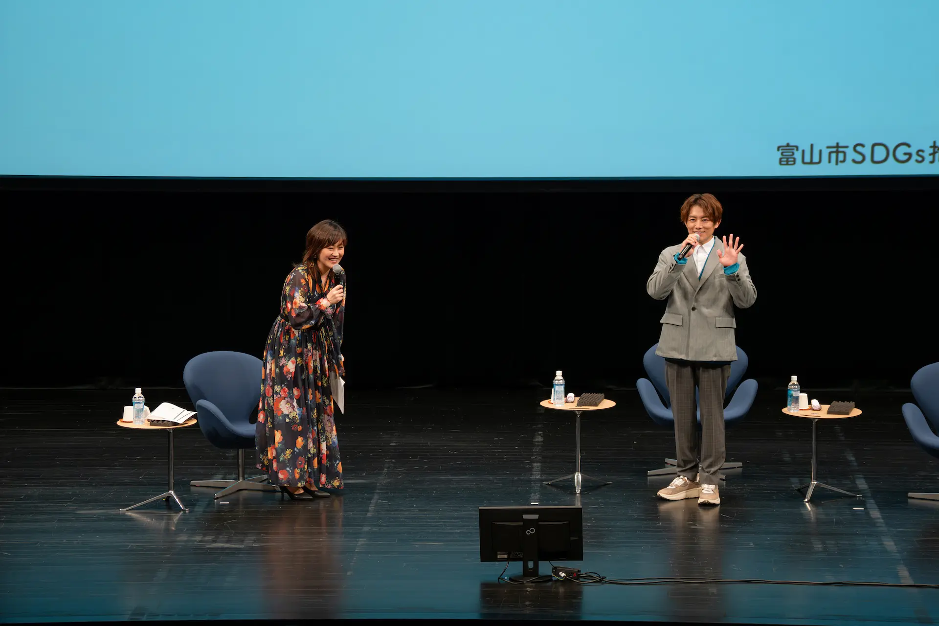 富山市SDGsウイークのメインイベントである富山市SDGs推進フォーラムが、オーバード・ホール中ホール(富山市牛島町)で開かれ、取り組み発表やトークショーなどが実施されました。